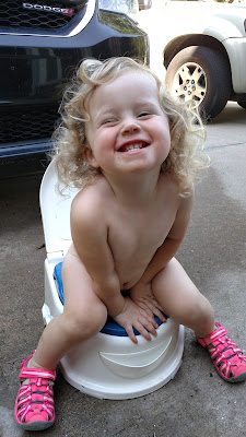 And from that night, she has decided it is her time to keep peeing on the potty. We hit it pretty hard those first 3 days with filling her body with liquid and then after those first 3-4 days she figured it out on her own. Sure we had accidents on the carpet, in the car seat, poop in the pants.... you name it, it happened. But the little girl wanted to keep rolling with underwear. So we did. Even when I went out of town to Chicago and Rob's mom was watching her, she continued to want to potty train.