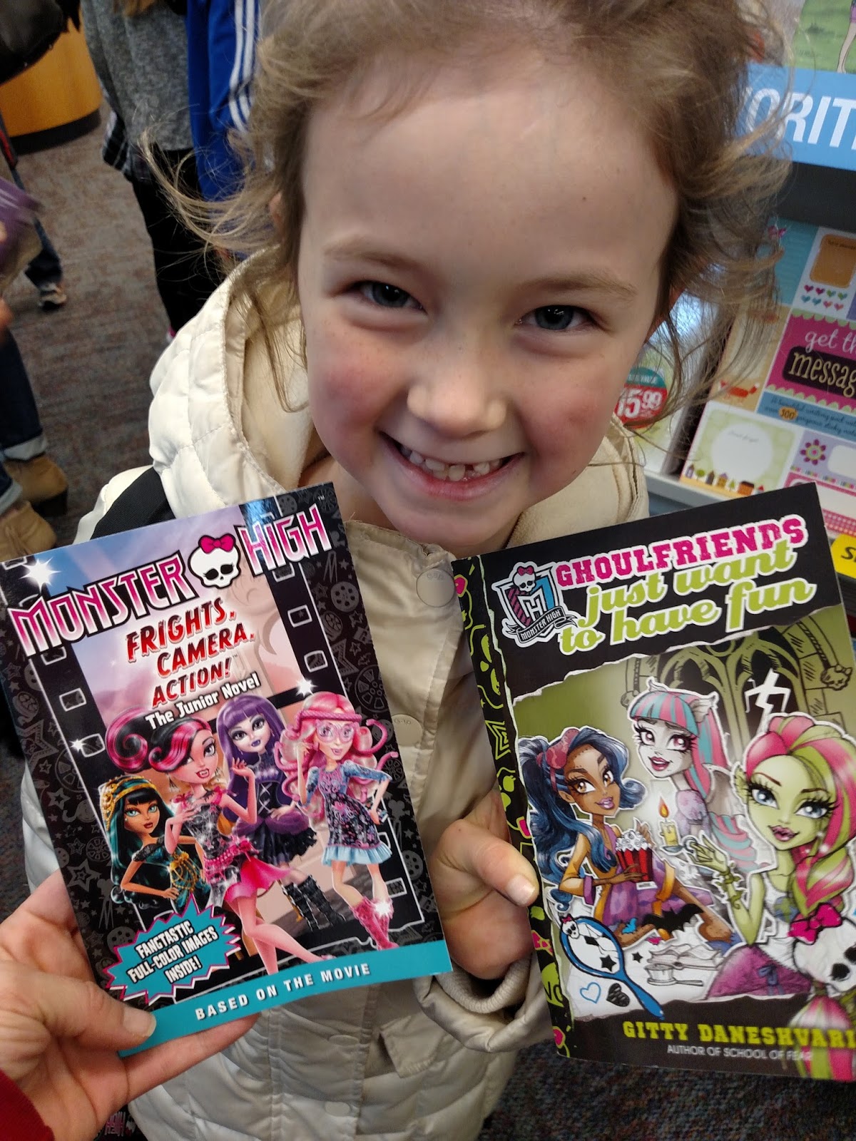 Two weeks ago was Anna's book fair at school. Daddy had taken her to the fair to purchase 2 books and she was so excited. But as the week went on she started noticing books that she didn't see when she went with Daddy. So I told her I would get her one. And I bet you can't guess what she chose.... Monster High!!!!!