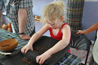 We shelled the cocoa beans, grinded the cocoa beans with a lava stone, made a traditional Mayan chocolate drink and left with homemade chocolate. The girls didn't care for the drink or the chocolate but they loved the experience! In my opinion, both the chocolate and the drink were extremely bitter, and although adding honey and some cinnamon helped with the drink, I came to the same conclusion as the girls :)