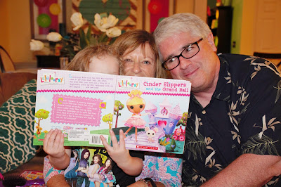 At the beginning she didn't want to wear her itchy lalaloopsy outfit so after a quick pout session on the stairs we changed into another outfit :) She played with balloons and danced with her friends and even took time to sit back and watch everyone enjoy her party. Her friend all colored her favorite lalaloopsy character with her (Pillow Featherbed). She even cried a little (it's my party and I'll cry if I want to) once the pinata opened (and she didn't want to hit or pull on the pinata at all) and everyone hurried to get the candy. I don't know what caused her to cry but once sissies and friends helped her get candy in her bag she was golden. Then the rest of the party she just wanted to eat cake and open presents (can you blame her?) So that is what we did!